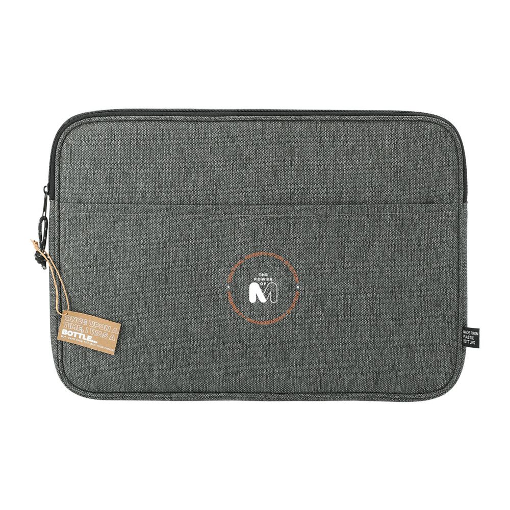 sku: PM-SM-5952The Vila Recycled 15'' Computer Sleeve offers the ideal combination of on-trend style and sustainability. Fits up to a 15" laptop, zippered main compartment and a front pocket with hook-and-loop closure for extra storage. Made with RPET from 100% recycled plastic water bottles.
